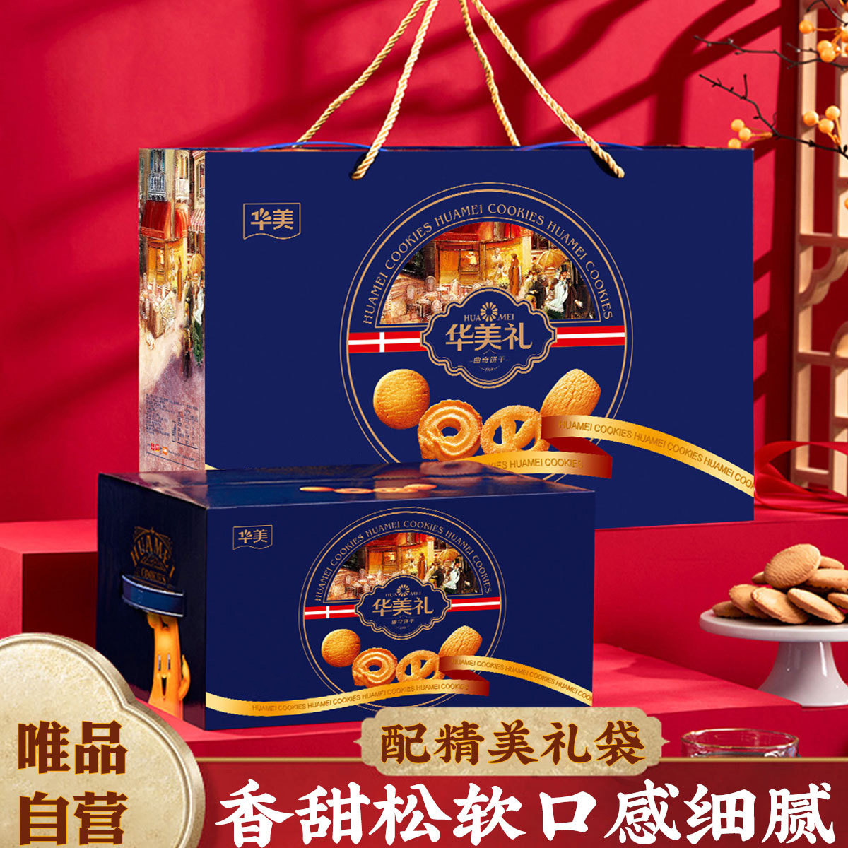 华美 1480g曲奇饼干礼盒零食大礼包休闲零食年货送礼礼品礼盒
