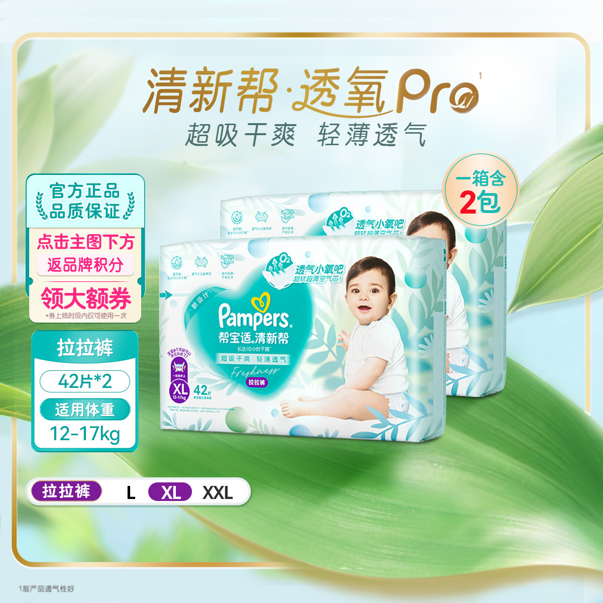 帮宝适 【年度爆款】清新帮拉拉裤L-XXL超薄透气尿不湿婴儿尿片